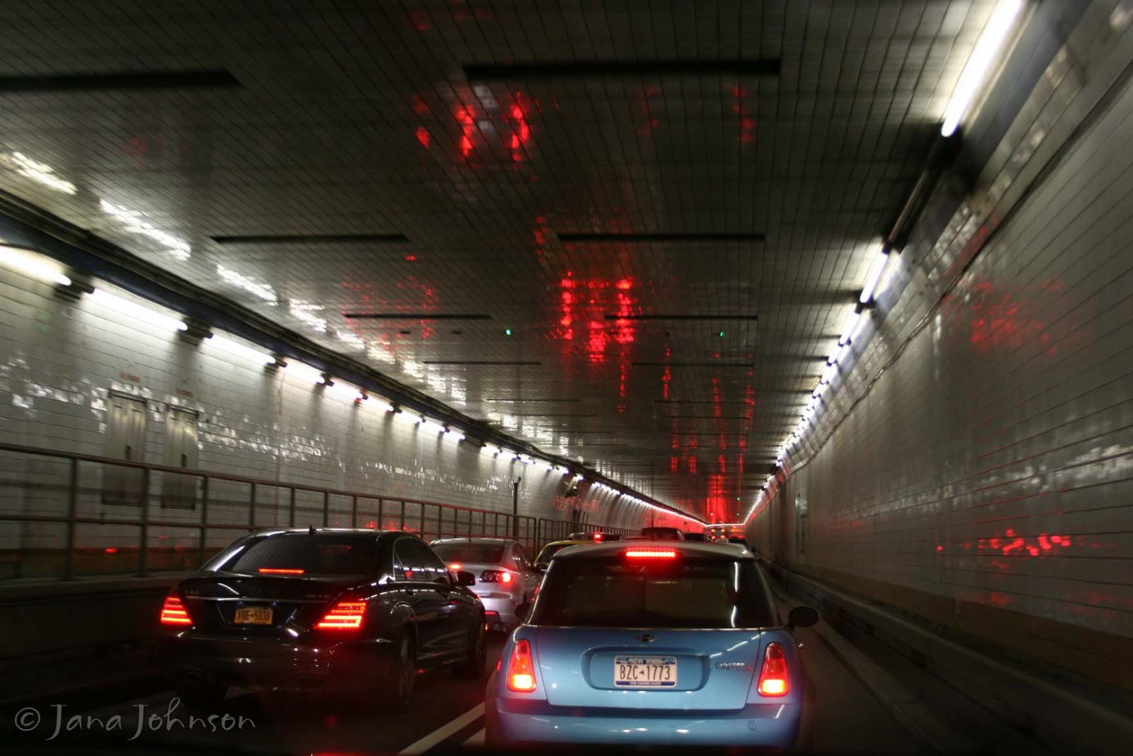 I followed the signs and our map to direct Brad through and over the skybridge to the Holland Tunnel into New York City - right around 5:00 pm.